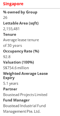 In December 2020, the Group deepened its presence in Singapore by investing in a 26% stake in a portfolio of 14 quality industrial, business park, high-spec industrial and logistics properties in Singapore, for an investment amount of up to S$76.6 million, via the subscription of 26% of the units and 7.0 per cent. notes due 2031 in Boustead Industrial Fund (“BIF”).